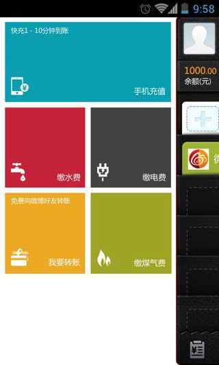 微博钱包(安卓版)是新浪微博推出的社交化在线支付平台,采用新浪自有的“新付通”支付牌照,最早于去年12月15日正式上线,主打“轻松、快乐和安心”的移动支付体验。