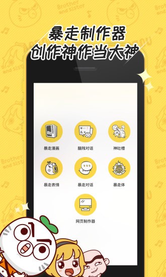 “暴走大厅”中可以制作暴漫图片、配台词等功能供用户使用。