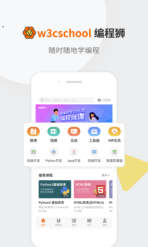 2.真正实现在手机上也能敲代码做实战,边学边练,在实战中提升编程技能。
