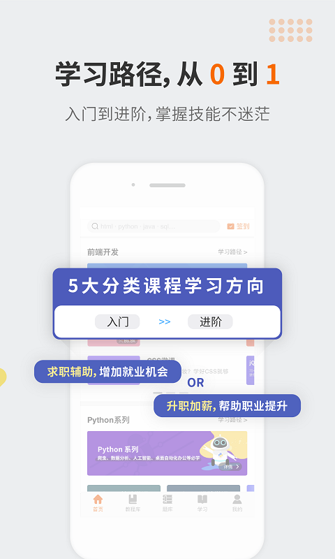 1.使用手机线上编程实战,通过编程实战提升写代码的技能。