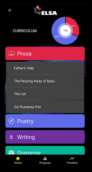 myELSA学习一款在线英语学习APP,英语学习应用程序是印度唯一的英语语言学习解决方案,其集成的模块涵盖了针对WB Board、CBSE、ICSE和ISC学生的英语学校教学大纲,以及映射在CEFR上的通信模块。