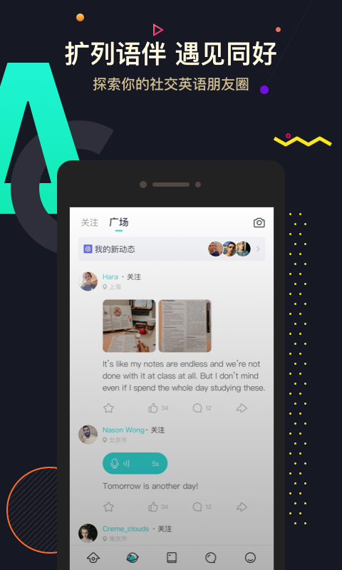 交流电app方便大家更好在线学习英语,通过各种英语练习以及精彩剧本对话逐渐增加自己对面英语的兴趣,还有各种趣味游戏,更好提升自己的英语口语能力,让你的英语口语更快提升,每次剧本对话更流畅,满足大部分用户的交友需求,方便大家可在线边学习,边扩大社交圈,为大家提供更好的英语对话环境,喜欢英语对话的小伙伴就来下载吧!