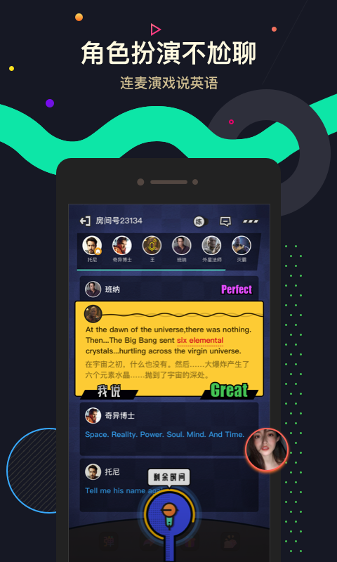 2、让大家在线通过各种精彩的剧本对话更好提升自己的英语对话流畅度。