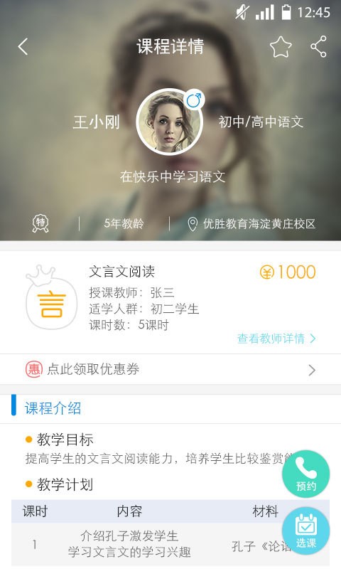 3.支持互动课堂课程,用户可以通过客户端直接对自己参与的互动课进行信息完善、预约、取消预约操作,并在对应预约的时间可以进入进行互动课学习。