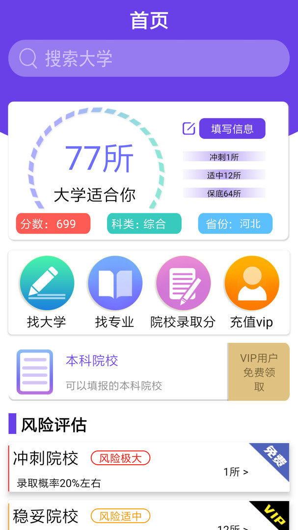 2.高考志愿填报直通车app根据科目选择大学和专业,专业查询选考科目范围。