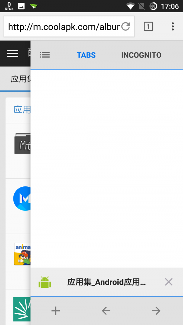 3、有三种标签页的风格,侧滑、底部和卡片,普通标签和隐身标签在同一个activity。