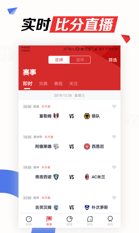 4.进球、点球、红黄牌关键赛点即时呈现,球员阵容调整随时掌握,关注每一场您喜欢的比赛。