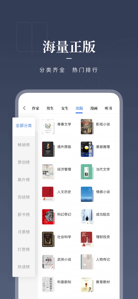 海量书库:近50万册正幅员书,25万集听书,10万集漫画;