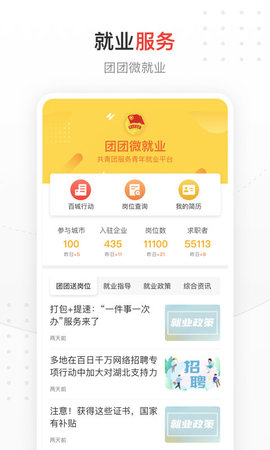 4、服务化:“团团微就业——共青团服务青年就业平台”,由团中央支持,将以各项“共青团认证”,帮助大学毕业生提高就业竞争力。“青年大学习”是共青团最具知名度的政治理论学习平台。客户端还为青年提供婚恋、考试、义诊等方面的网上服务。