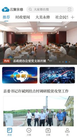 云聚永修app一款新闻媒体平台,帮助用户第一时间了解经济,民生,社会等方方面面的内容,软件通过文字,视频,图片等不同的方式为用户呈现精彩的内容,每天更新最新内容。