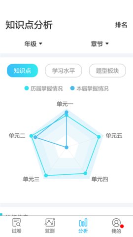 2.查看该地区学校和年级对章节知识点掌握情况的雷达图。