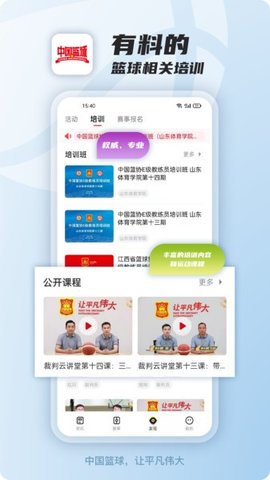 在中国篮球app中,有丰富的篮球裁判员、教练培训内容和篮球课程,为篮球爱好者和从业者提供权威、专业的信息获取渠道