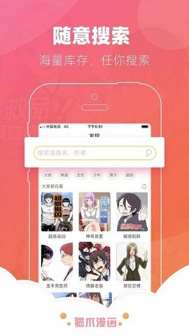猫爪漫画APP是一款手机在线卡通观看软件,能看到很多免费的漫画,都是高清版本,阅读起来非常愉快。也可以将手机中的漫画导入软件,直接观看,非常方便。你还在等什么,来下载吧。
