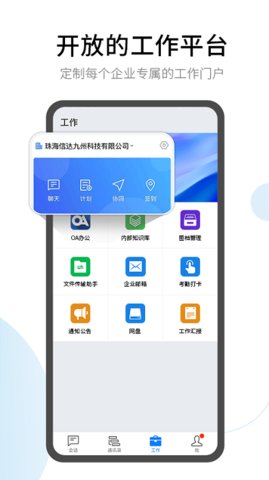 1.支持微信企业号对话服务,打通微信信息,自由选择是否工作与生活分开。