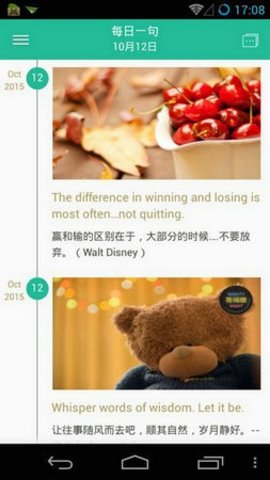 2.中英文翻译、查词、在线聊天翻译、一天一句、学习与交流圈等内容,学英语从未如此有趣;