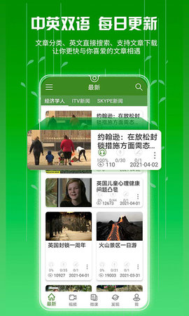 1.BBE英语听力中有每日分类,英文直接搜索,支持下载文章,快速获取自己喜欢的文章。