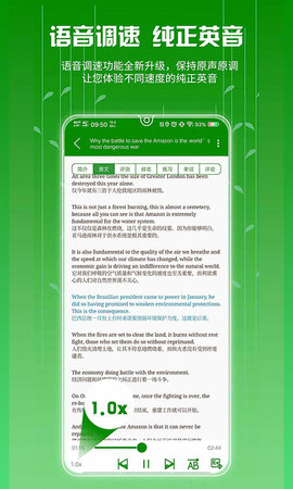 1.强大功能,语音调速、单句回放、仅英文显示、学习闹钟、学习记录显示等功能。