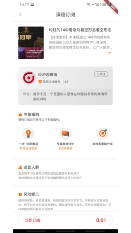 3.课程订阅,用户可以在这里找到各种投资课程的点播相关订阅,随时学习知识。