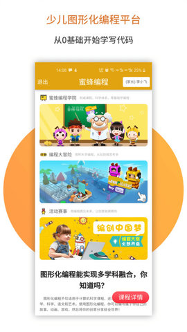 蜜蜂编程可以随时在线学习各种编程服务,软件主要是图形编程,相对简单,根据年龄的不同,提供不同难度的编程课程。有趣的方式边玩边学,感兴趣的朋友赶紧下载试试吧!