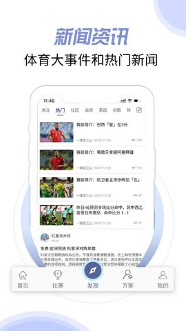3.贴心推送:比赛成绩软件实时推送,不让你错过每一场精彩的体育对决比赛。