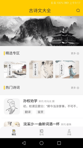4、有非常全面的诗词库,如古文、宋词、楚辞、现代诗词等均可随意阅览。