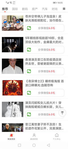1.点击闪闪看app中的转发奖励页面,并选择任何要转发给微信好友的文章