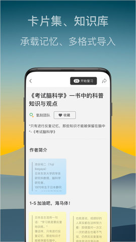 1、氢刻通过卡片捕捉信息以及知识和思想,然后通过科学智能的学习和复习,帮助你记忆和思考