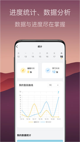 2、根据你的学习进度,自动推荐你需要学习的卡片,让你更容易、更科学地形成记忆