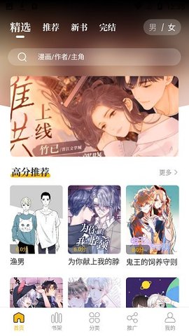 2、本软件提供精选、男女书单的标签,帮助用户快速筛选自己的漫画