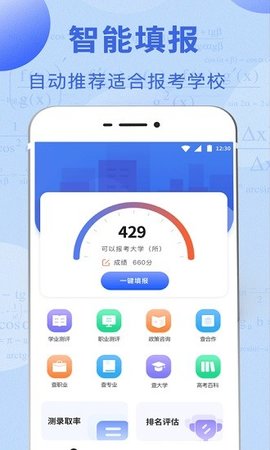 2、根据考生的个人情况和考试自愿自动推荐适合考试学校提供的可行性报告和指导,预估高校录取。