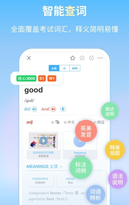 3、添加智能查询、背诵单词、单词听写等功能,帮助掌握词汇,权威内容+智能学习单词,不只是查字典