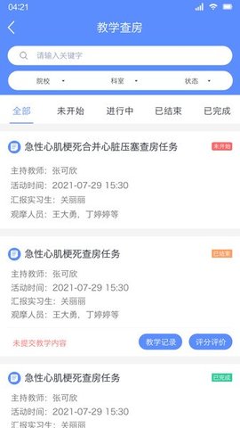 2、教学查房,可以输入关键字进行查询,使查房任务轻松完成。
