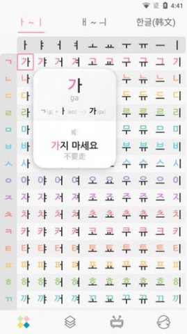 2、这里面包含了韩语字母表的24个基本元音和基本辅音,可以随意练习。