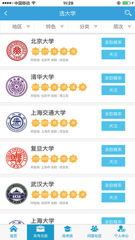 2、高考圈APP汇聚全球千余所高校学子,瞬间展示最优质、最实用、最可行的服务与咨询