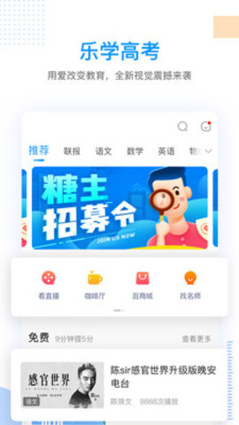 乐学高考app是小编为您推荐的一款在线互动学习平台软件,这款软件包含了老师辅导资源,提供了高质量的学习课程,对高考的各种科目以及更实用的功能,为自己即将到来的高考做好准备