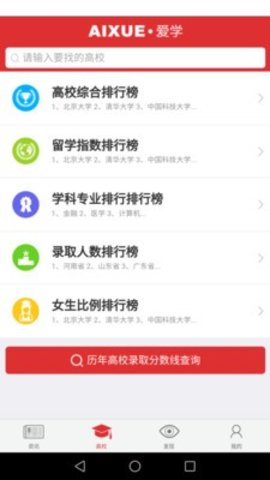 通过爱学高考app的各种各样的高考信息查询服务,现在每个人都最关系是他们的分数和学校将有注册,查询在学校我们会知道有很多全国各地的学校,但每个学校不同,所以必须进行详细的研究。