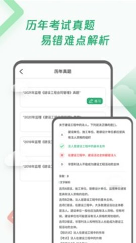 2、帮助建设者轻松通过考试。支持随时随地离线题库学习。