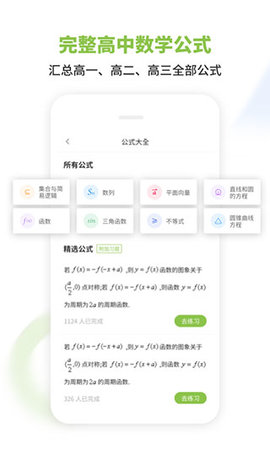 2、高中数学公式:覆盖高一、高二、高三所学的公式,选择与学习主题相匹配的重点和难点公式,逐步打破