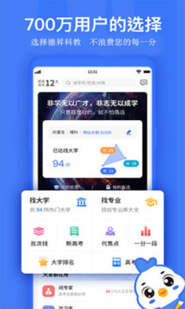 德昇科教专为高中生创建的一款志愿申请app,为考生提供准确的高校筛选和推荐服务,该软件包含了历年各高校的招生信息,帮助每一位考生选择合适的大学,欢迎各位考生前来进行下载。