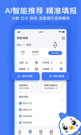 3、智能择校:用户输入成绩和个人需求喜好推荐学校