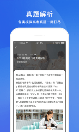 1、考题模拟:高考日语app采集历年考题,实时模拟考题进行评价,区分用户的考试合格率和知识学习情况