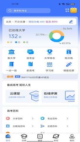 智趣志愿app是一个可以为每个学生选择适合自己的好学校的软件,用户可以通过网络查询自己的成绩和以往各大学的录取成绩,并结合大数据和用户兴趣,为用户推荐适合自己的志愿学校。