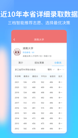 3、摘要:您可以查询2700多所高校历年院校详情、录取分数线、专业简介
