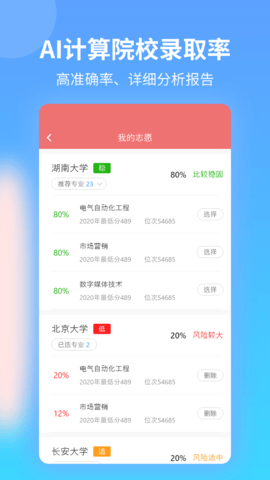 AI高考志愿专家专门为高三学子进行打造,提供历年各高校的考试成绩和录取情况,帮你安心填报高考志愿,方便考生快速确定自己的考试信息,绝对是考生必备的软件,有需要的考生不可错过。