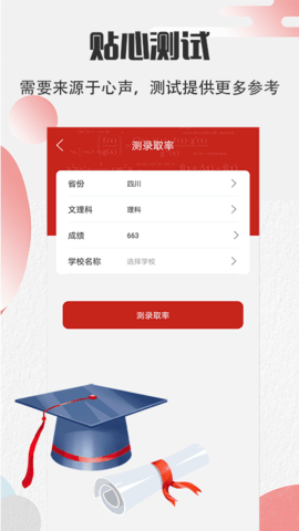 5、提供高校帮助报名服务的高考信息分值填报服务申请,集成了分数线查询、院校推荐、院系介绍、志愿填报、专业评价等功能