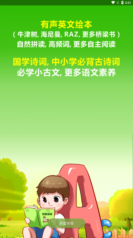 1、高品质英文绘本阅读软件,分级阅读选读材料,可跟读智能AI声音校正。