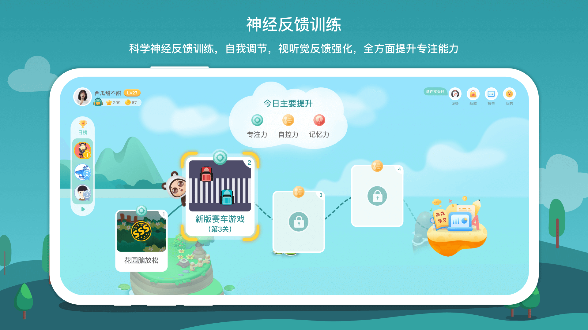2、每天推送个性化培训内容,通过持续训练可以有效提高大脑底层的注意力水平和核心执行功能