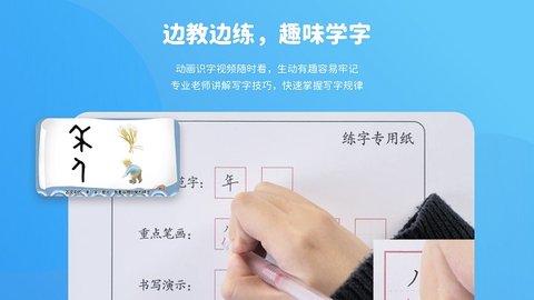 2、生动的识字视频可以随时观看,生动有趣,便于记忆。专业教师讲解写作技巧,快速掌握写作规律。
