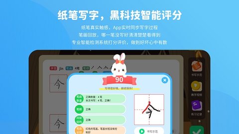 晓蒙练字有真正的纸笔触碰,app实时同步书写过程-笔画回放,你可以清楚地看到哪些笔画写得不好-专业的智能检测系统评分评估,让你知道是好是坏。