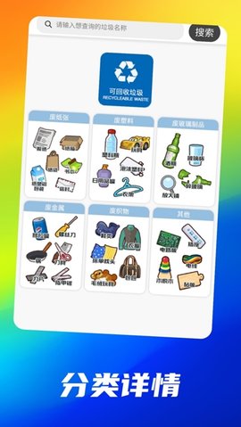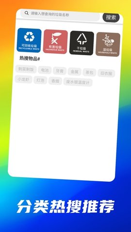 2、以快速搜索垃圾名称以获取垃圾分类,帮助您清楚地了解垃圾的类型。